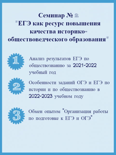 |  | 1 ноября 2022 года состоялся практико – ориентированный семинар районного методического объединения учителей истории и обществознания учителей по теме: "Подготовка к ЕГЭ по истории и обществознанию. Особенности заданий КИМ 2023г" Материалы семинара: Гильфанова Ю.Р. учитель истории и обществознания МОУ Туношенской СШ ЯМР (ссылка) Чекменев К.А. учитель истории и обществознания МОУ Михайловской СШ ЯМР (ссылка) Протокол №2 заседания РМО (ссылка) |